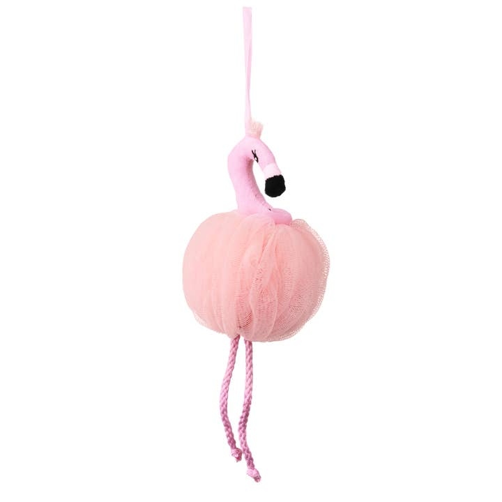 The Flamingo Mesh Bath Pouf gently cleanses & exfoliates while creating a rich, foamy lather, leaving skin soft & refreshed. Fun flamingo design for a tropical touch!