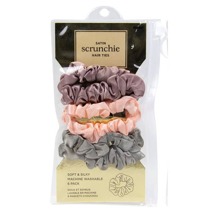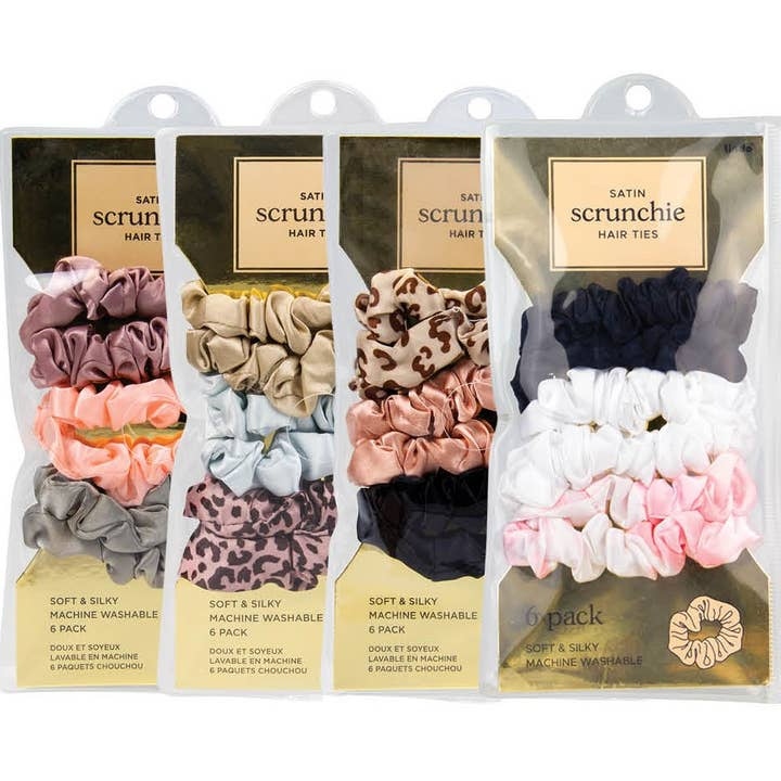 Upgrade your hair game with Lindo Satin Scrunchie Hair Ties! Made from ultra-soft, silky satin, these scrunchies secure your hair without pulling or tugging. Each 6-pack includes assorted colors and prints, featuring solid, leopard, and rose gold designs. Machine washable and comes with a clear travel pouch for easy storage.